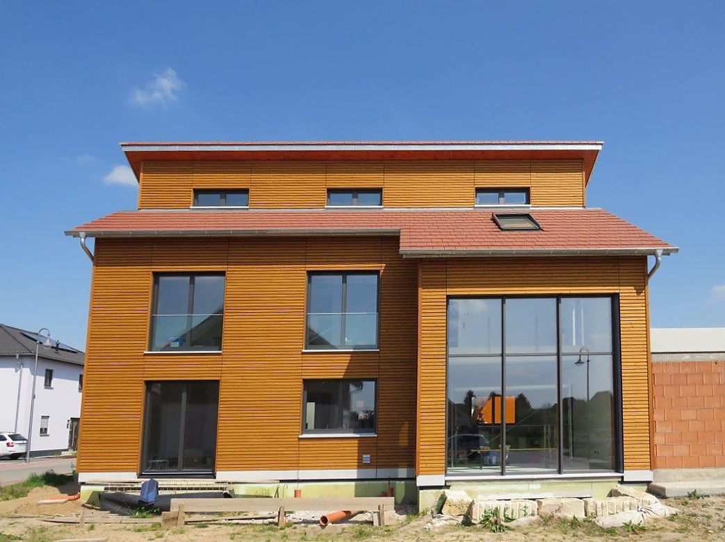 Bei diesem Projekt entstand ein großzügiges Einfamilienhaus in moderner Holzrahmenbauweise auf einem Massivbau-Kellergeschoss.