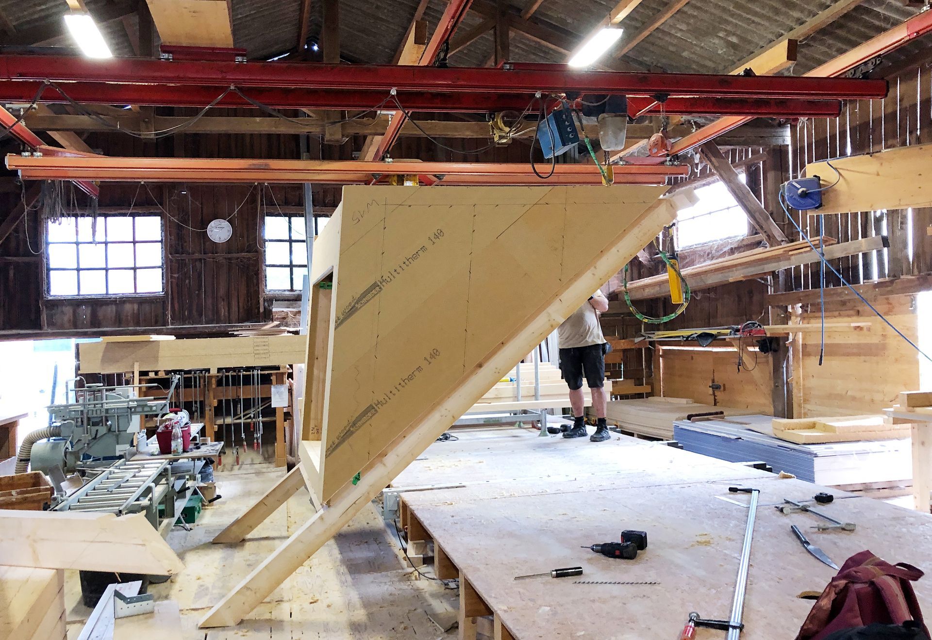Im ersten Schritt erfolgte die umfassende Prüfung der baulichen Möglichkeiten im Rahmen des geltenden Bebauungsplans bzw. §34 BauGB. Auf Grundlage eines detaillierten Vor-Ort-Aufmaßes erstellten wir die Entwurfsplanung einschließlich Statik für den Holzbau und die Verankerungen der neuen Fassadenelemente. Darauf aufbauend folgten die Werkplanung sowie die Erstellung der Werkstatt- und Freigabepläne für die Produktion der vorgehängten Wandelemente.